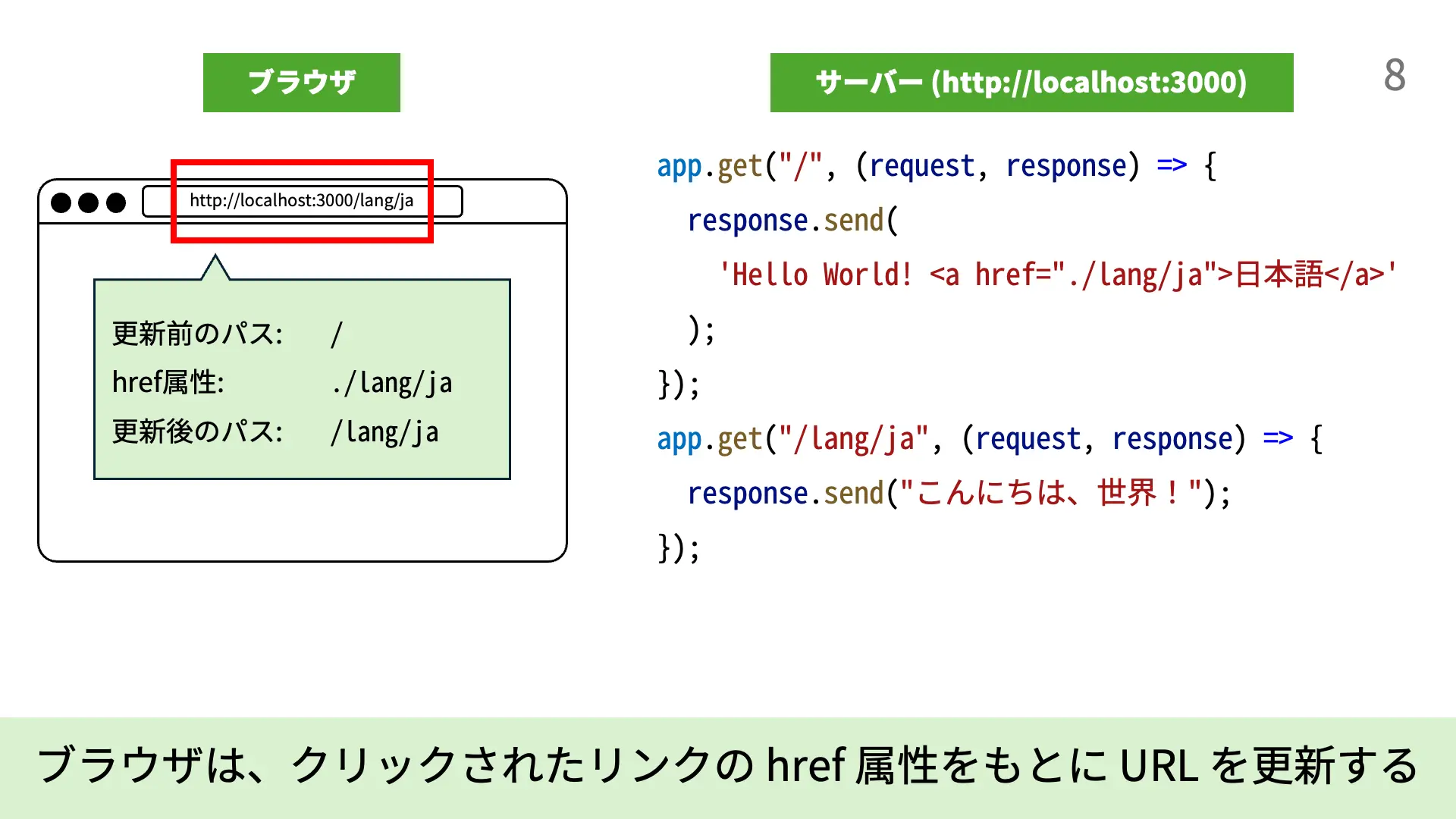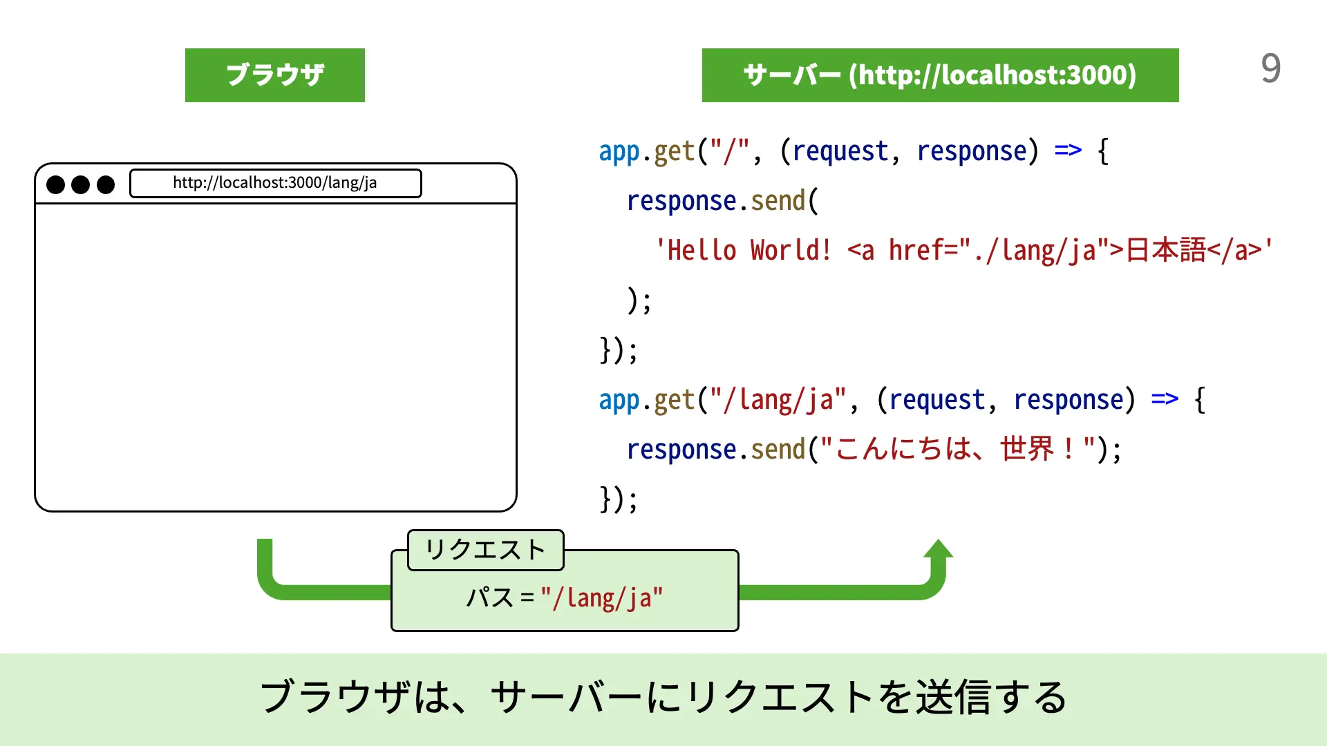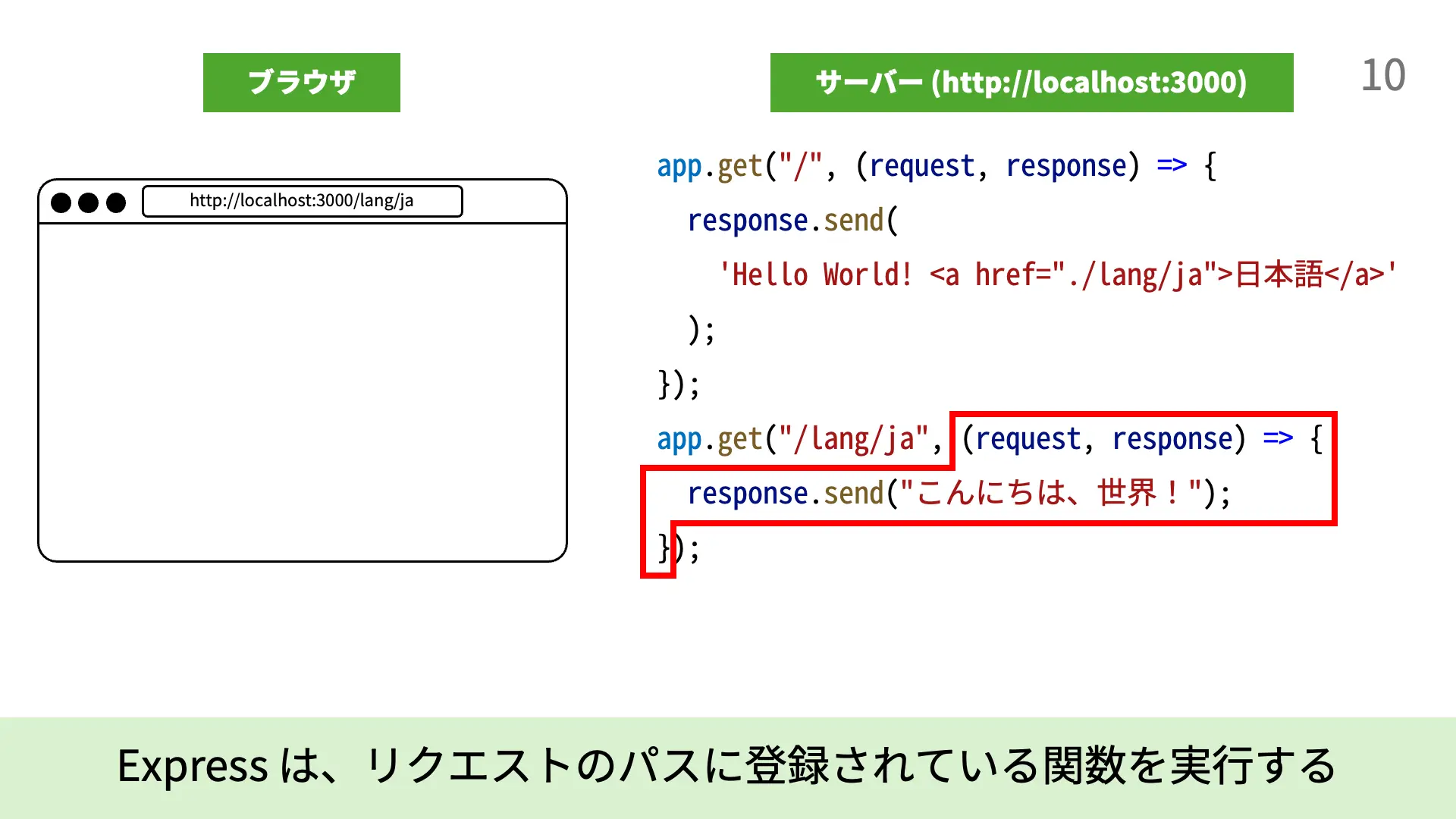 3. [7行目] 4行目と同様に、/lang/jaというパスに対するリクエストを受けたときに実行される関数が登録されます。